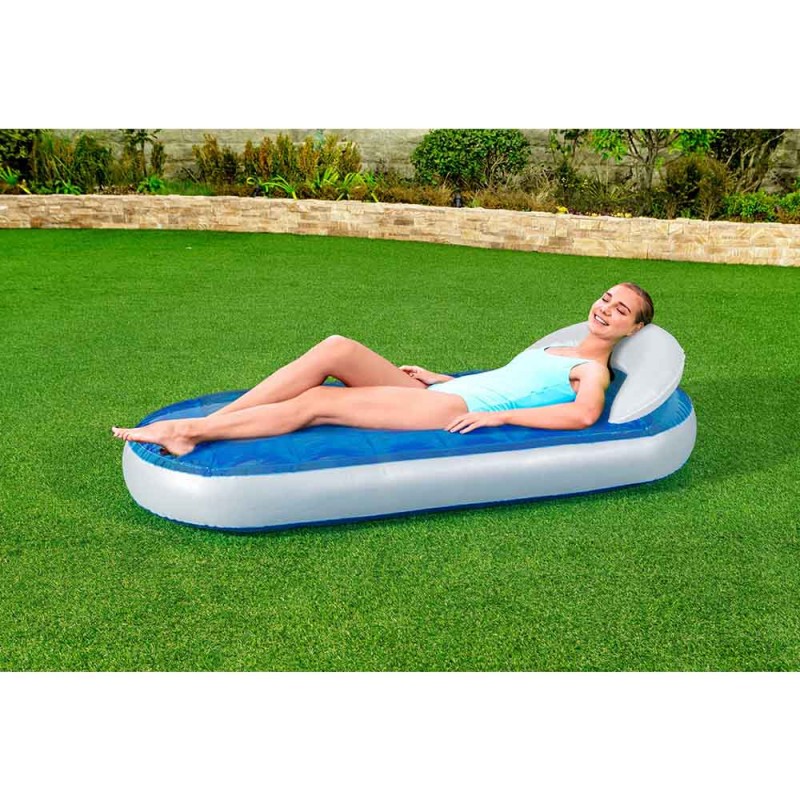 Bask in the sun, relax on the porch or add more seating to your next summer party with the Bestway Poolside Lounger. Stay cool while lounging in your backyard by filling the chamber with water. It provides a comfortable surface, along with keeping it nice and cool when its hot outside. The Poolside Lounger is easy to set up – simply fill the chamber with water and inflate the product. Plus, with the comfortable headrest, you'll want to spend each day outside relaxing on the Bestway Poolside Lounger.