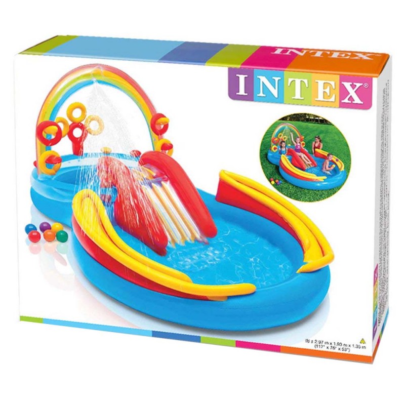 in, take a shower and land in the pool all with the Intex Rainbow Ring Play