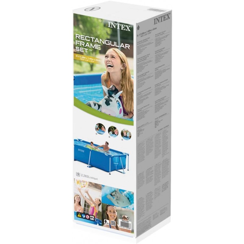 This fantastic Framed Pool from Intex is perfect for the back garden! These colorful and easy to assemble sturdy pools are a great size and depth for the whole family. It is ready for water in 30 minutes. This rectangular frame pool is not only easy to set up but is fun for the whole family too.