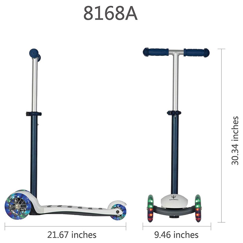 Officially licensed from Maserati, this stylish 3 wheel scooter has an extra wide front end with 2 front wheels for extra stability and an ultra smooth ride. Your child will get the hang of it in no time at all.