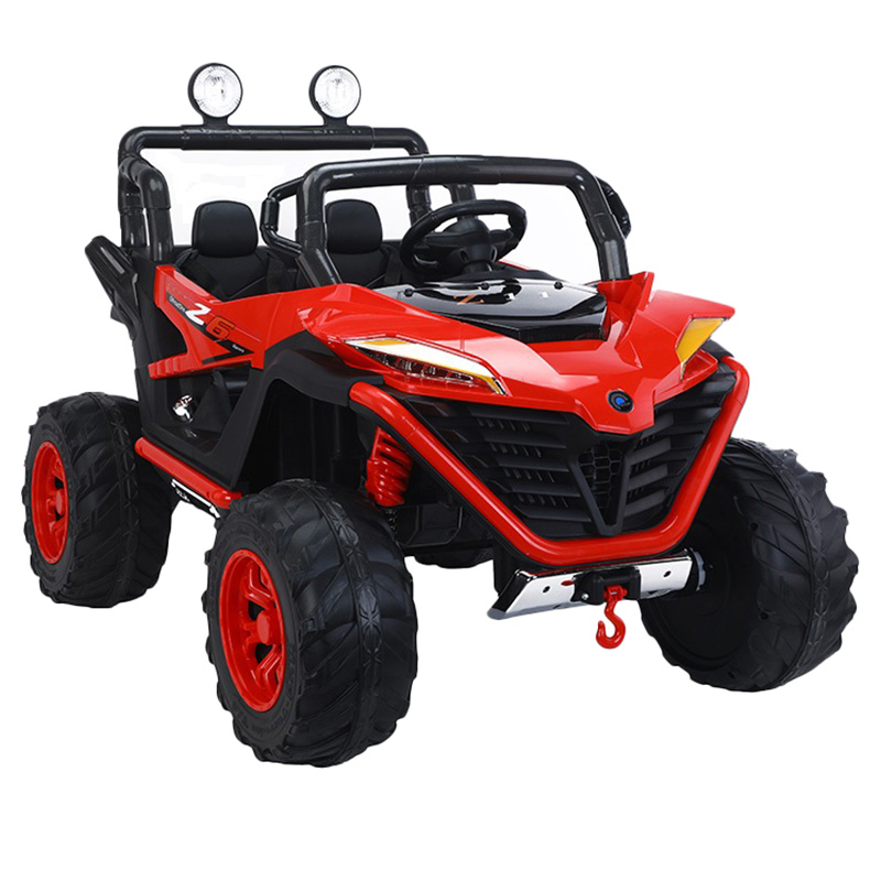 Easy to ride and control this Myts Ride-On Torch 12V Remote Control UTV Electric 4-wheel shock absorber off-road four-wheel drive kids car that has forward, backward movement and left and right with handle operated, headlight with electricity display, mp3/usb/tf musics, the 4-wheel designed Cayenney jeep is smooth and simple to ride for your toddler or young children.