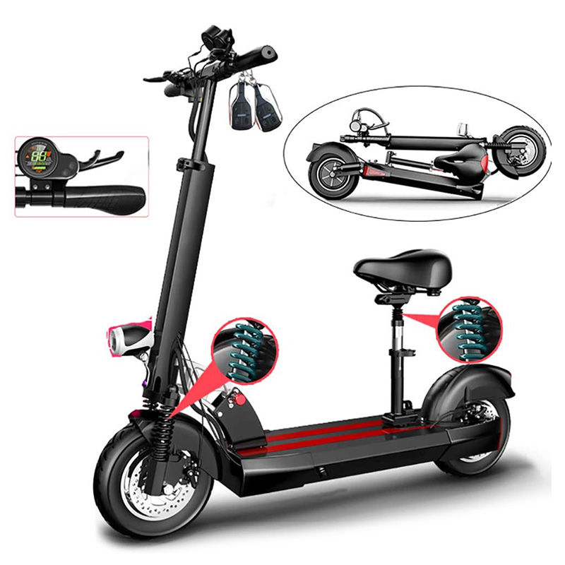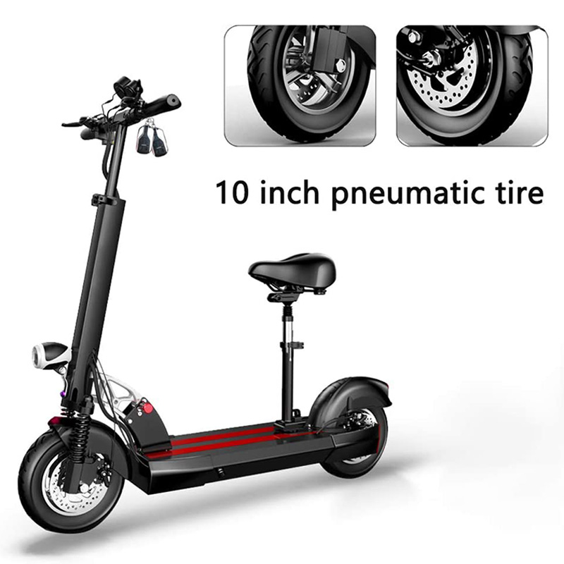 - 10 inch air-packed tires, with LED lighting, with seat.