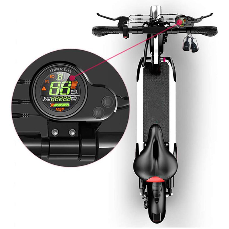 Aluminium alloy material, only 19kg, foldable design which makes the scooter more easy to carry and less space density when folded.