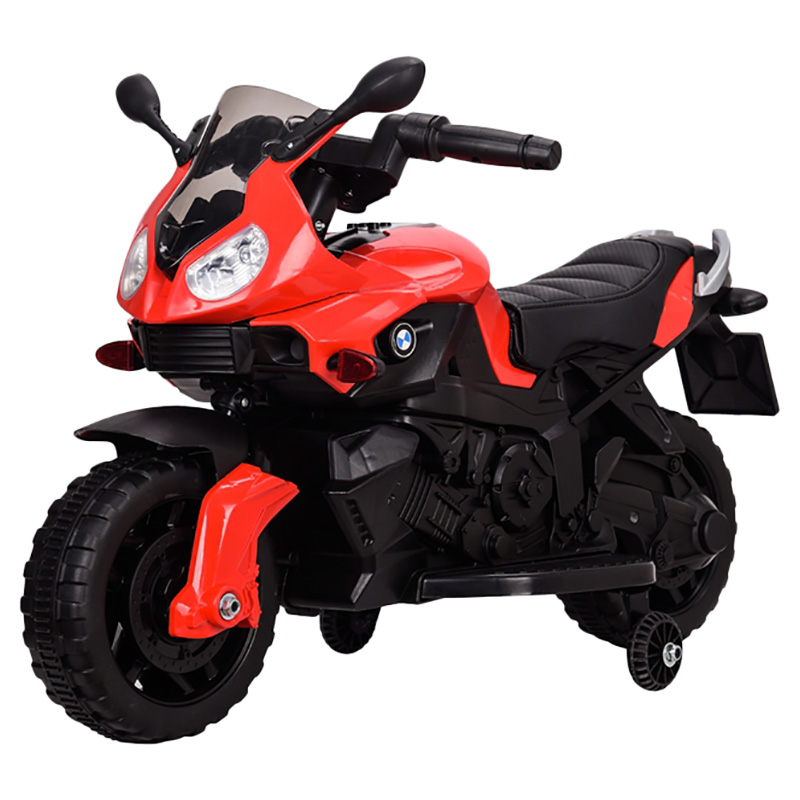 The electric ride-on motorcycle also has a working horn, lights, and rechargeable electric battery.