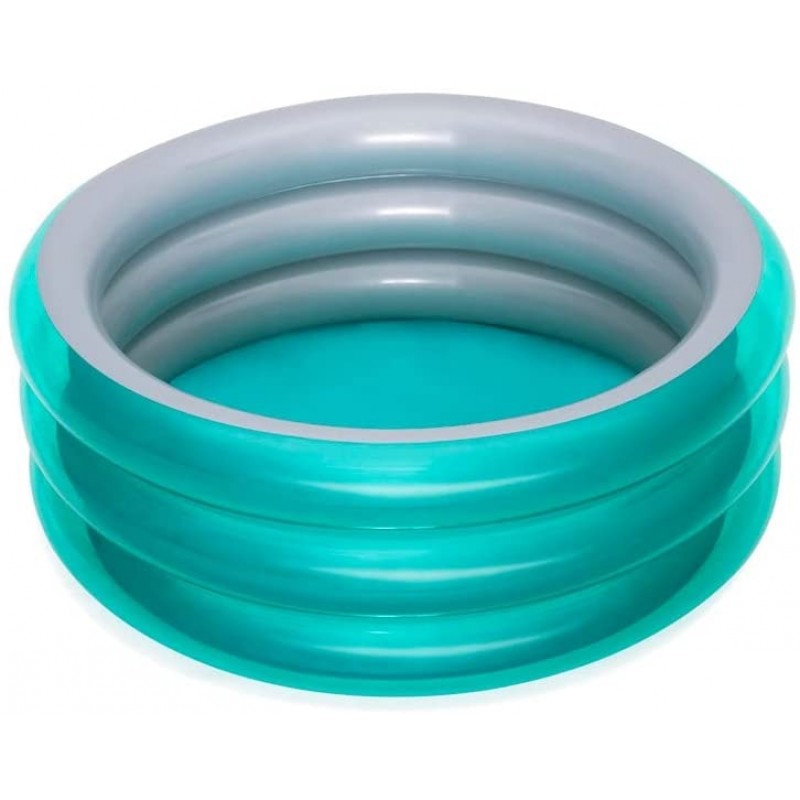 A colorful and bright 3 ring pool. The pool is inflatable.