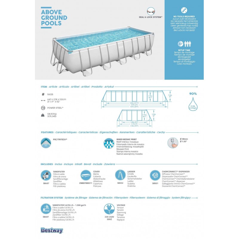 Bestway Power Steel Rectangular Above Ground Pool 640x274x132cm