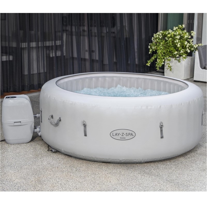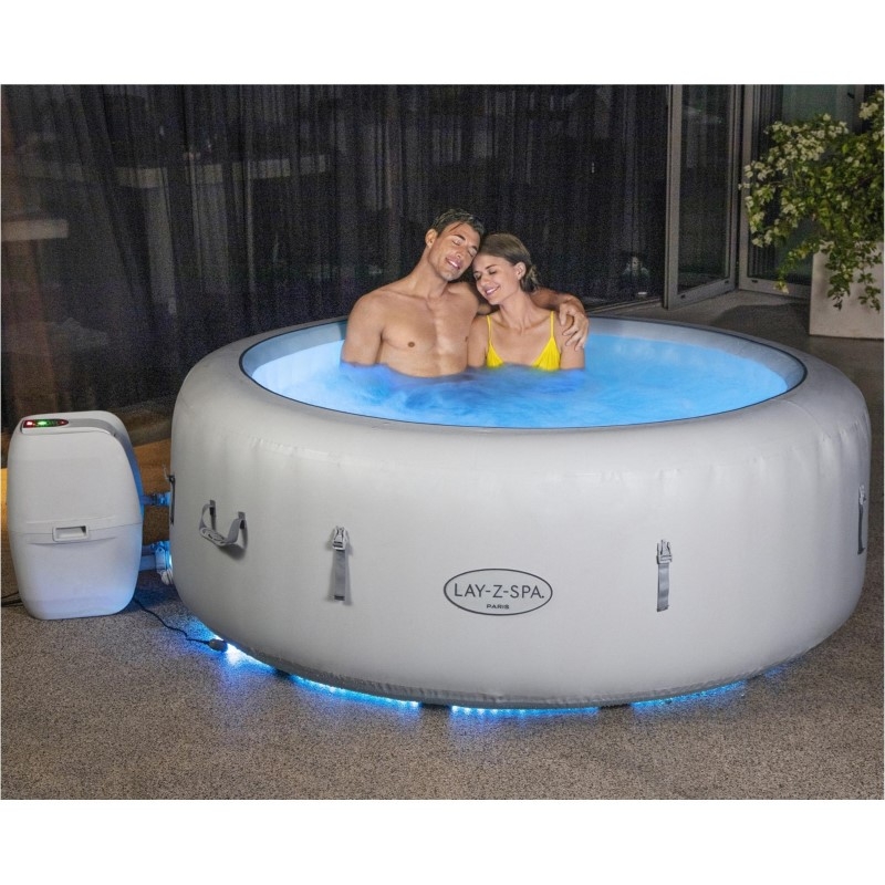 The Lay-Z-Spa Paris AirJet is suitable for 4-6 people making it perfect for relaxing with family and friends. The Lay-Z-Spa Paris is built with a relaxing and invigorating AirJet Massage System, made up of 140 all-surrounding air jets allowing you to drift away on a cloud of bubbles. Enjoy heated water up to a blissful 40°C. Heat the hot tub, run the massage system and filter the water at the same time using just the pump. Use our innovative Freeze Shield technology to automatically activate the pump when it gets cold outside. Now you can safely use your hot tub all year round even when the air temperature drops below 4°C. The energy-saving timer not only saves energy by “switching off” when it’s not in use, but it also allows you to schedule the hot tub to start heating up so it’s ready for when you get home. Transform the lighting to match your mood with the stunning integrated multicolour LED Lighting System. Use the wireless remote to easily cycle through the 7 colours or set them to auto colour change mode. From blissful blues to romantic reds you have the power to match your mood