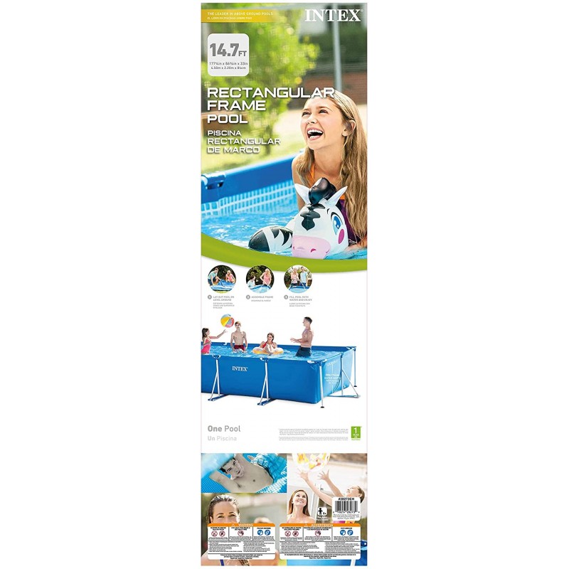 This Intex rectangular metal pool has a spacious design that enables you to relax along with your friends or buddies. The base of the pool is carefully designed to prevent wear and tear due to stones and pebbles.